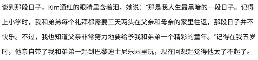 明明是小孩,却要奔波在父母之间,Kim在很多年后都对那段糟糕的岁月记忆犹新。