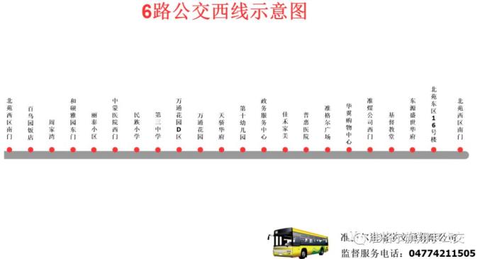 线路名称:(6路)北苑小区—北苑小区 西线发车时间:夏季:6:00—20:30