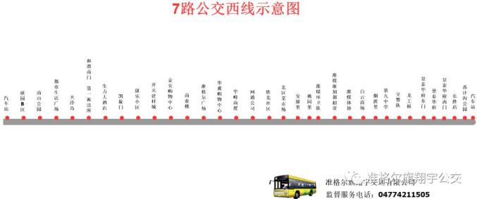 线路名称:(7路)汽车站—汽车站 西线发车时间:夏季:6:00—20:30