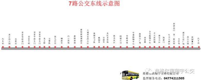 线路名称:(7路)汽车站—汽车站 东线发车时间:夏季:6:00—20:30