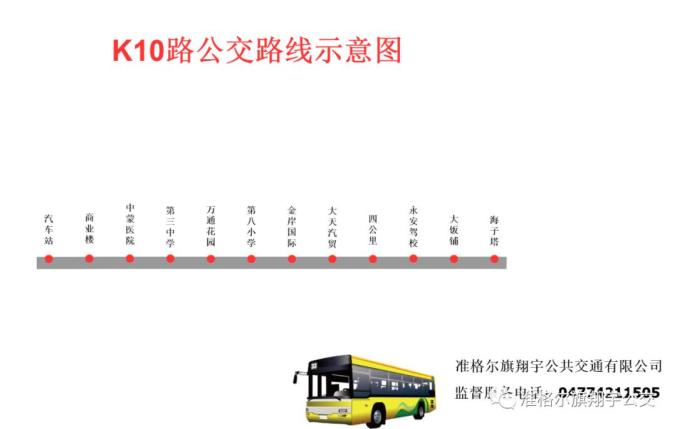 线路名称:(K10路)汽车站-海子塔发车时间:夏季:7:10—19:00