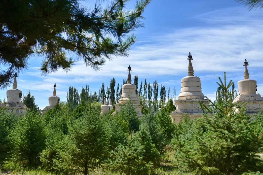 2000年,白塔寺修复工程启动,在萨班灵骨塔塔基四周,分别修建了高约19米的萨迦四祖的佛塔,其余小塔围拱周围,其中5米塔共有5座,7米、9米、11米塔各30座,形成了一片白塔塔林。这些塔以十字折角形分布,高低错落,排列有序,在院内形成了一道独特的宗教文化景观,使白塔寺显得格外肃穆庄重,蔚为壮观。