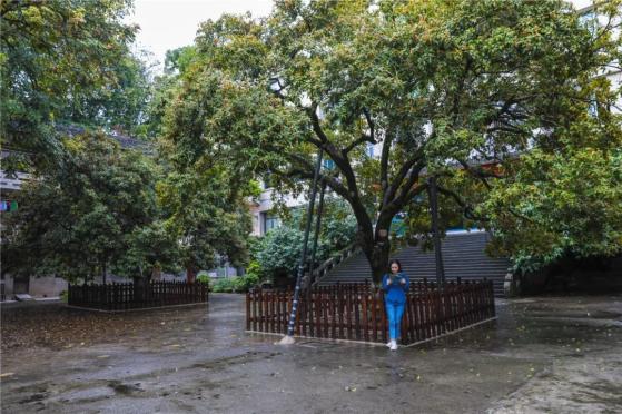 实验小学梁山校区内300年树龄的桂花树,即使树干空心也不忘绽放,朗朗书声,阵阵花香,交汇在一起弥漫整个校园。九月里盛开的桂花,也让机场路、石马路、双桂路变成了“香香街”,空气中带着微甜,初秋的宁静与惬意正在街头巷尾弥漫。