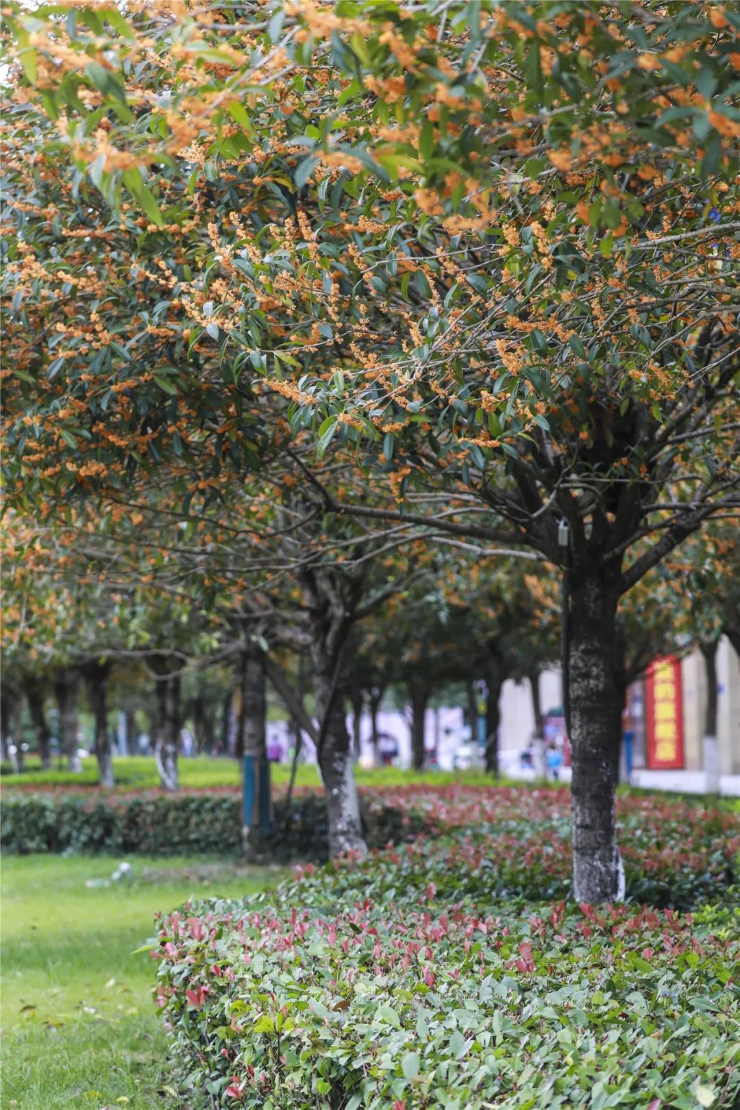 都梁新区丹桂大道花香四溢。城区公园