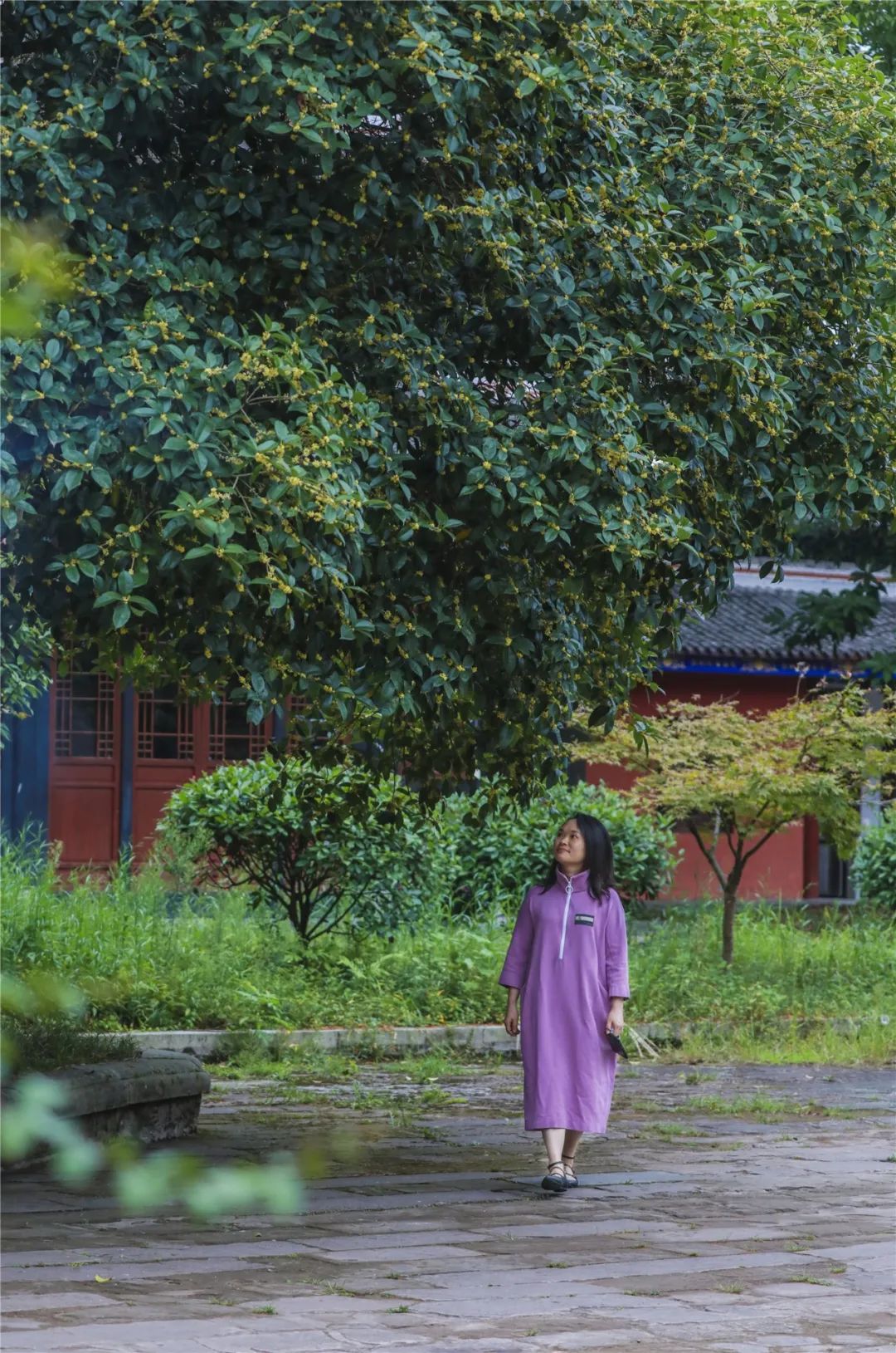 时至九月末,双桂堂也被花香环绕,醉倒在桂花的怀抱里。两株古老的桂花树,一金、一银,左右对列,竞相盛开,与古老的建筑交相辉映,花香四溢。