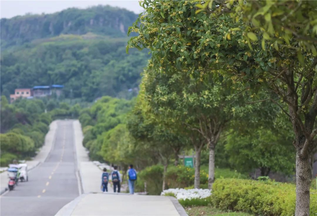 公园内,香味浓郁芬芳的桂花开满枝头。镇、乡
