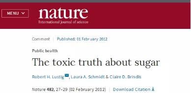 2012年2月,《Nature》发表了一篇题为《公共卫生:糖的毒性真相》(Public health: The toxic truth about sugar)的文章,文中指出:糖像烟草和酒精一样有害,而且糖的危害远大于脂肪和卡路里[2]。