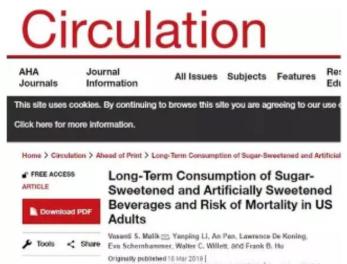 [3]Long-Term Consumption of Sugar-Sweetened and Artificially Sweetened Beverages and Risk of Mortality in US Adults,Circulation,2019,139:2113–2125.