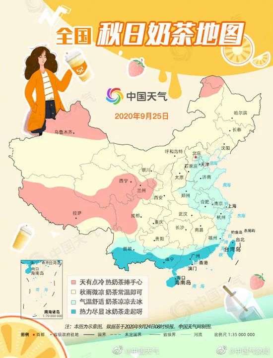 △如图:“秋老虎”去旅游了,短期不会回来再看张气象小编制作的奶茶地图: