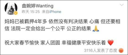曲婉婷一直在找机会替母亲“申辩”