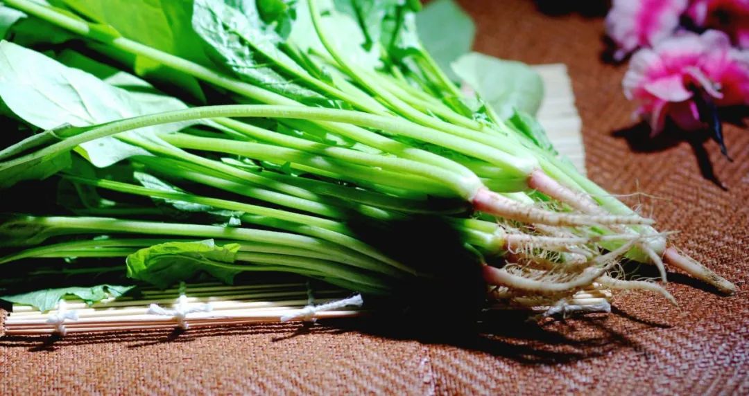 菠菜根中的膳食纤维含量丰富,不易炒熟,常被择去。菠菜根中含维A、维C、维K、铁,其中维K可以防止皮肤、内脏出血。常吃菠菜根还可以增强体力、排毒养颜。