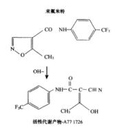 来氟米特(leflunomide, LEF) 是20世纪70年代末德国Hoeschst公司在发展农用杀虫剂过程中合成的一系列含氟化学结构物中的一种。
