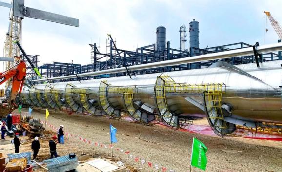 龙油“550项目”最重单体设备吊装一次成功。摄影:孙娜