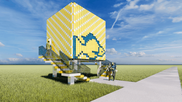 ▲艺术田立方:像素乐园像素乐园就像一个超级玩具,用方块堆积和组合形成有趣的盒子,中间采用可转动的像素盒子构成罗非鲫造型,游客可自由转动盒子,构建心目中的罗非鲫,实现艺术装置与人们的互动体验。