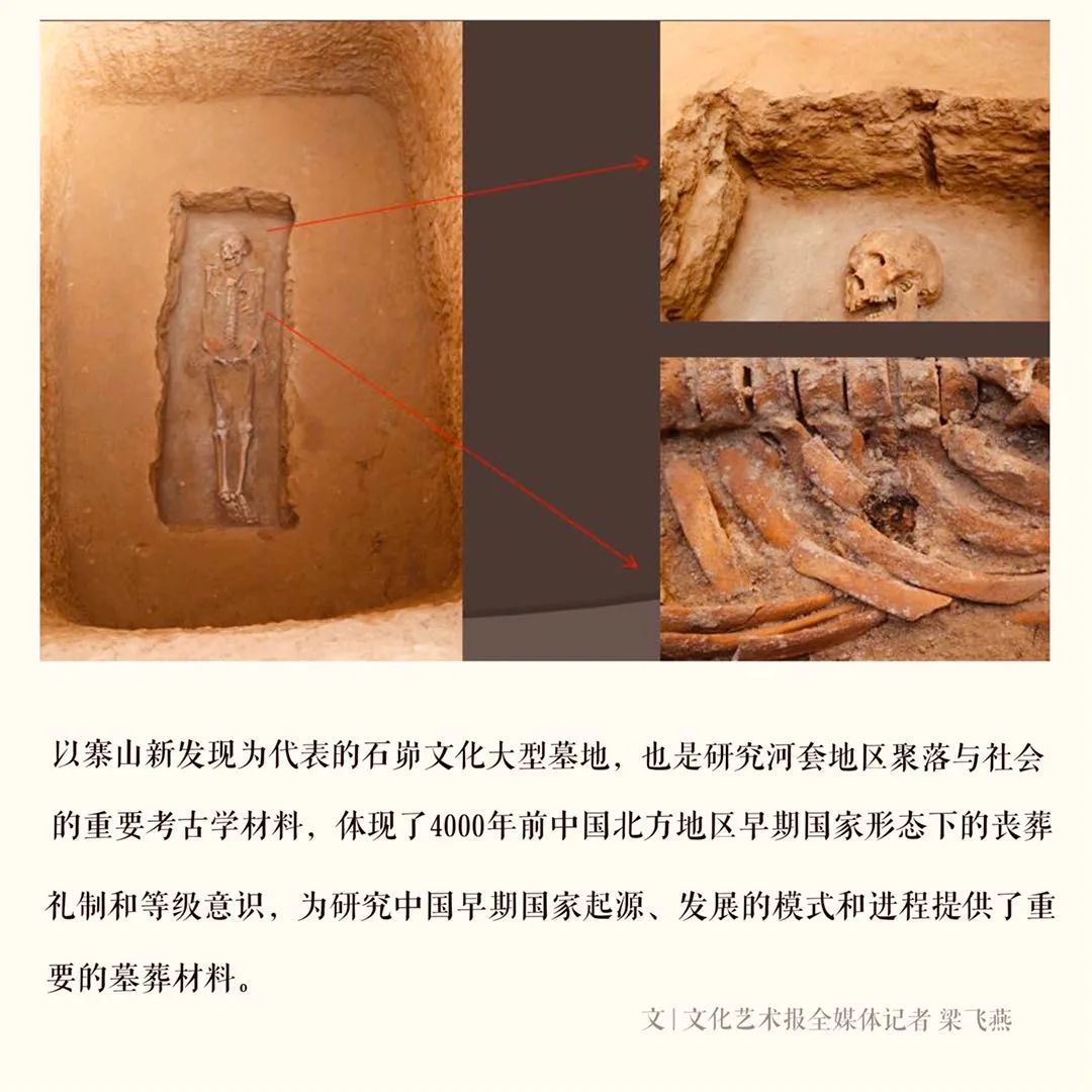 “本次寨山考古的最大收获是石峁文化大型墓地的首次全面揭露,也是河套地区首次发掘的等级区分明显的龙山时代墓地。该墓地的发掘,弥补了石峁遗址大型墓地被严重盗掘的重大缺憾。”