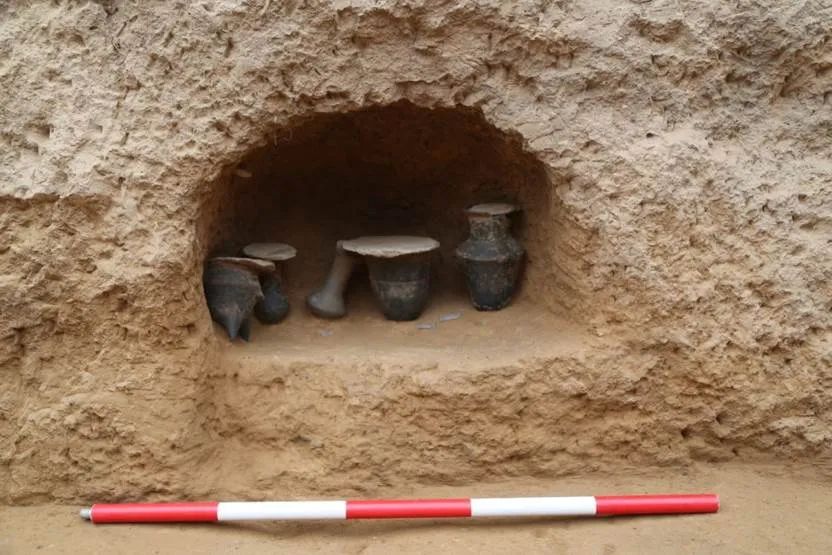 在发掘过程中,考古工作者还发现了一座较大的竖穴土坑墓,虽被盗扰,但壁龛内的随葬器物组合完整、器类典型,为找寻寨山龙山时代(石峁文化)墓地提供了重要线索。