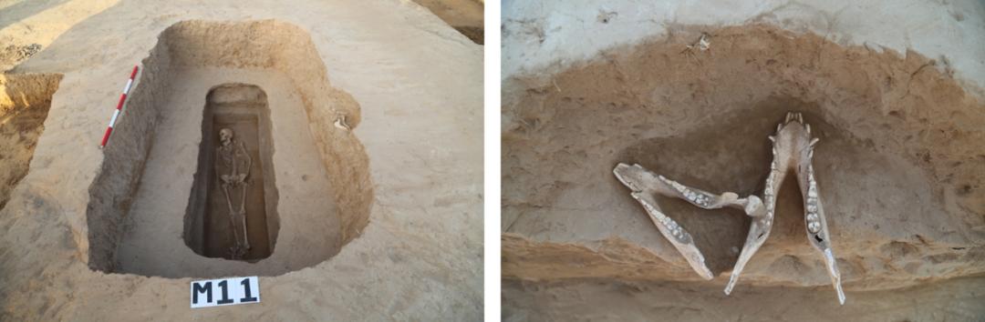 一类墓有木棺、有壁龛、有殉人,共3座。墓主身上随葬3至4件玉器。殉人初步鉴定均为女性。此类墓葬规模最大,面积约10平方米。二类墓有木棺、有壁龛、无殉人,共4座。墓主均仰身直肢,壁龛位于墓主左侧墓壁上,龛内放置猪下颌骨,初步鉴定为家猪。此类墓葬规模次之,面积6到7平方米。三类墓有木棺、无壁龛、无殉人,共7座。墓主均仰身直肢,此类墓葬规模较小,面积2到6平方米。四类墓无木棺、无壁龛、无殉人,共7座。葬式有仰身直肢和侧身屈肢两类,此类墓葬规模最小,面积2平米左右。另外,墓葬周边发现“灰坑葬人”现象,或与墓地祭祀或葬仪有关。