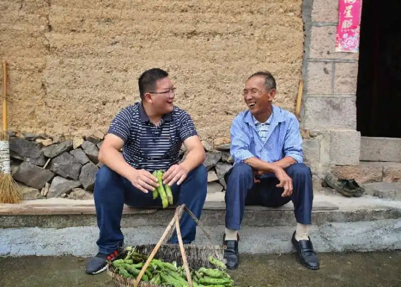 图为中国联通福建分公司派驻宝岩村的第一书记聂鑫正在和农户交谈。(资料图片)城乡之间 因网连接