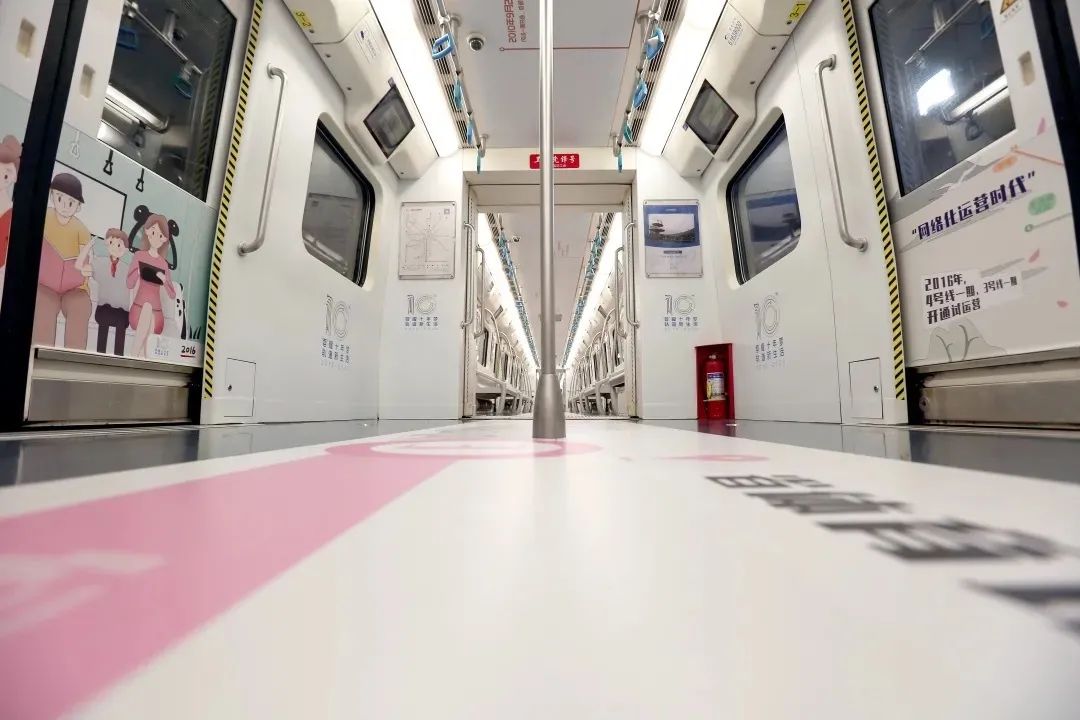 与此同时,地铁十周年主题列车从火车南站1号线向南驶出,这趟“城市动脉号”主题列车正是十年前1号线开通时的首发车,106次。