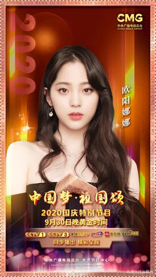 26日上午,@春晚 官微发布央视国庆晚会《“中国梦·祖国颂” ——2020 国庆特别节目》阵容,其中,有台湾艺人欧阳娜娜和张韶涵。