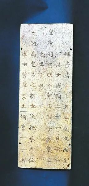 册封金册在江口沉银出水文物中,有多枚册封金册。其中既有抢夺自明藩王府的,也有张献忠建立大西国后封爵妃嫔的金册。这枚金册抢夺自藩王府,正面刻“維嘉靖二十三年歲次甲辰十二月乙丑朔二十六日庚寅皇帝制曰朕惟太祖高皇帝之制封建諸王以隆藩屏必擇賢女以為之配榮”等字样。