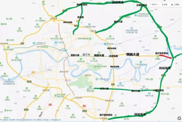可以从武鸣、伊岭岩收费站出站避开拥堵路段,绕行南武城市大道进城;或者是绕行037县道→走邕武路、高峰林场进城。