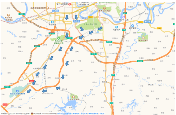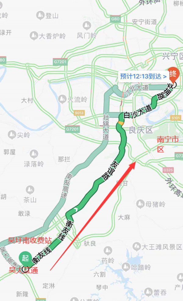 (二十一)G7211南友高速苏圩至吴圩段发生拥堵时:可选择出吴圩南收费站→322国道→友谊路→目的地。
