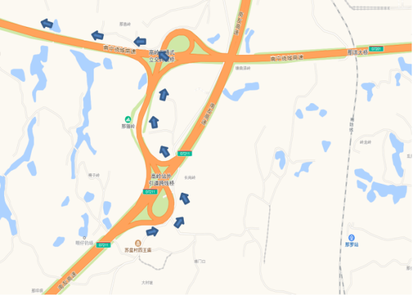 (七) G7211南友高速苏圩收费站出口拥堵时,南宁方向来的车辆,可选择在南宁市区→210国道→032县道→苏圩镇;崇左方向来的车辆,可选择在扶绥收费站→019县道→032县道→苏圩镇。