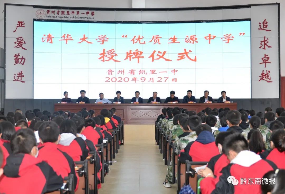 9月27日,清华大学“优质生源中学”授牌仪式在凯里一中举行,清华大学授予凯里一中2020年“优质生源中学”。