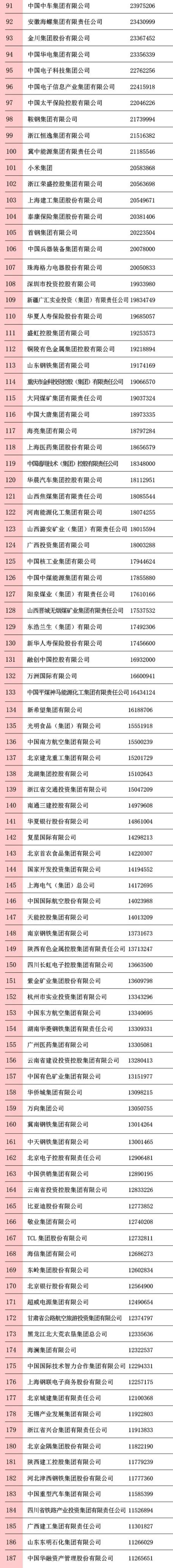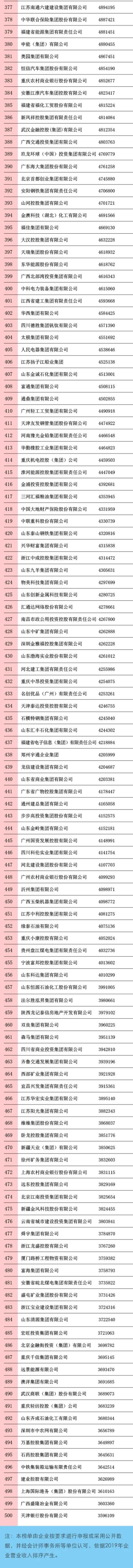 “2020中国500强企业”名单正式揭晓