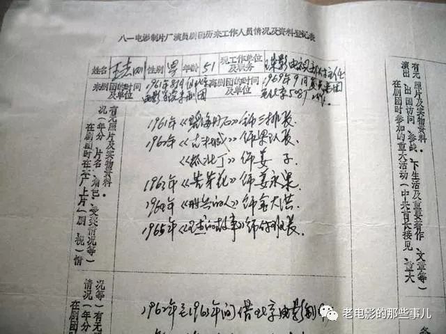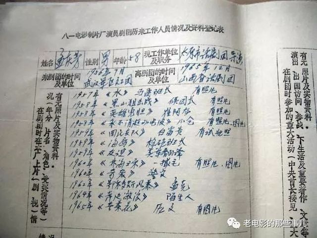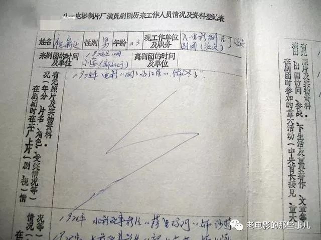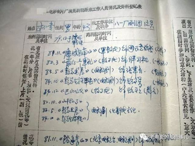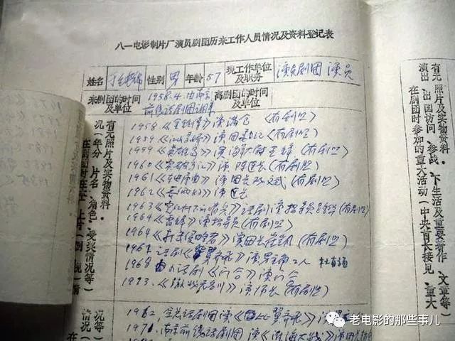 从中我们可以看出他是在1978年11月由昆明军区话剧团调入八一厂,并曾担任八一厂演员剧团一队队长。