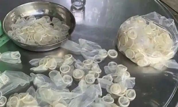 仓库的主人说,他们“每个月都从一个不明身份的人那里收到一批用过的避孕套”。一名女子在这场行动中被拘留,她告诉警方他们是如何处理这些用过的避孕套的:先在水中煮沸,然后风干,再在一个木制的阳具上重新塑形,然后再重新包装转售。