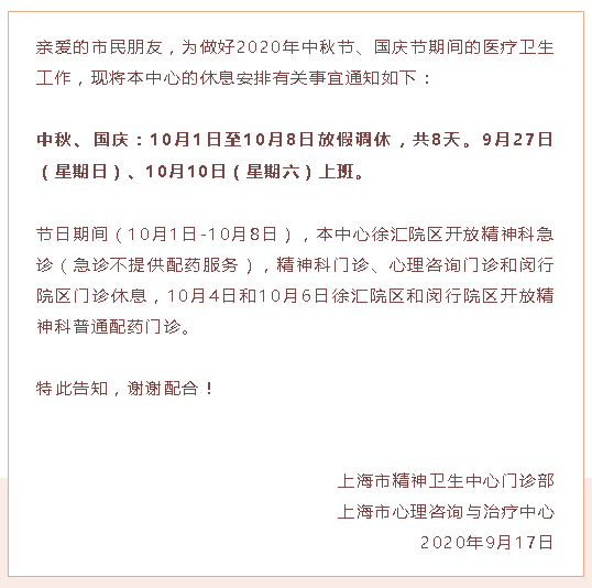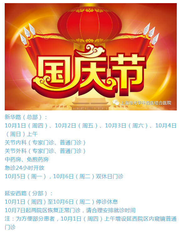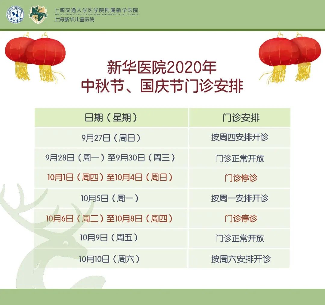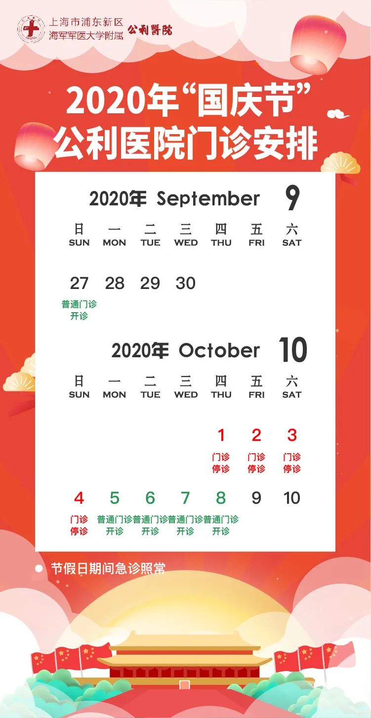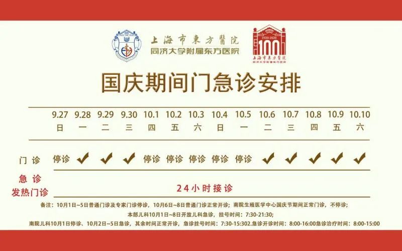 收藏帖!上海三级医院国庆中秋假期门急诊安排