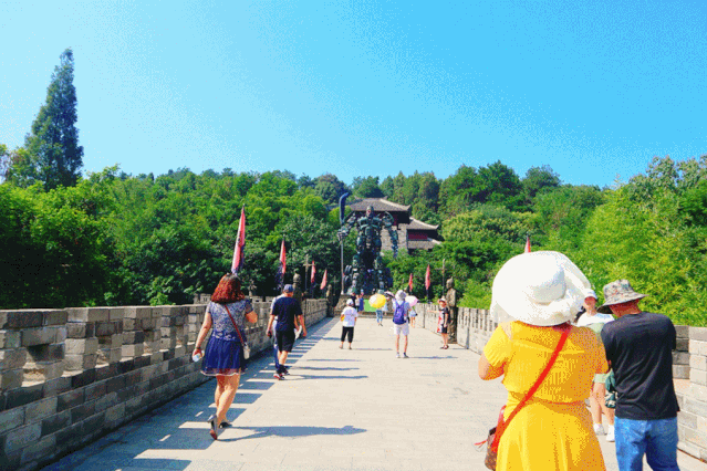 意气风发的传奇人物,战马嘶鸣的场面、气势宏大的战士列队,赤壁非物质文化遗产的脚盆鼓…金戈铁马,侠骨柔情,在一场声势浩大的开园仪式后,沉浸式的“穿越千年赤壁”。