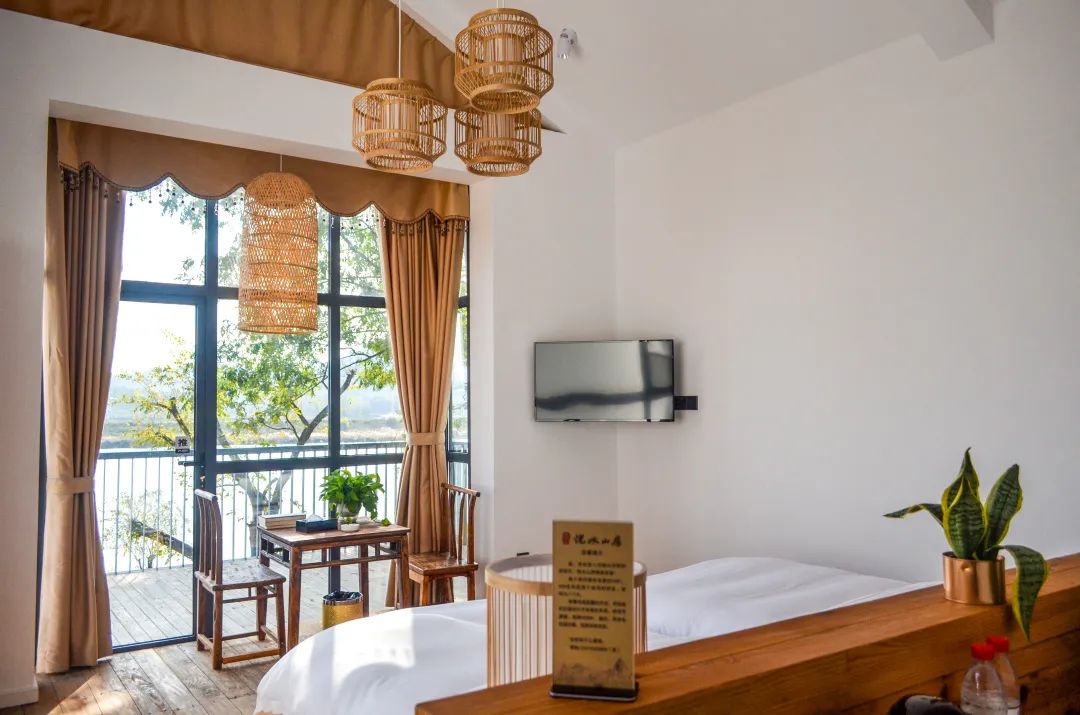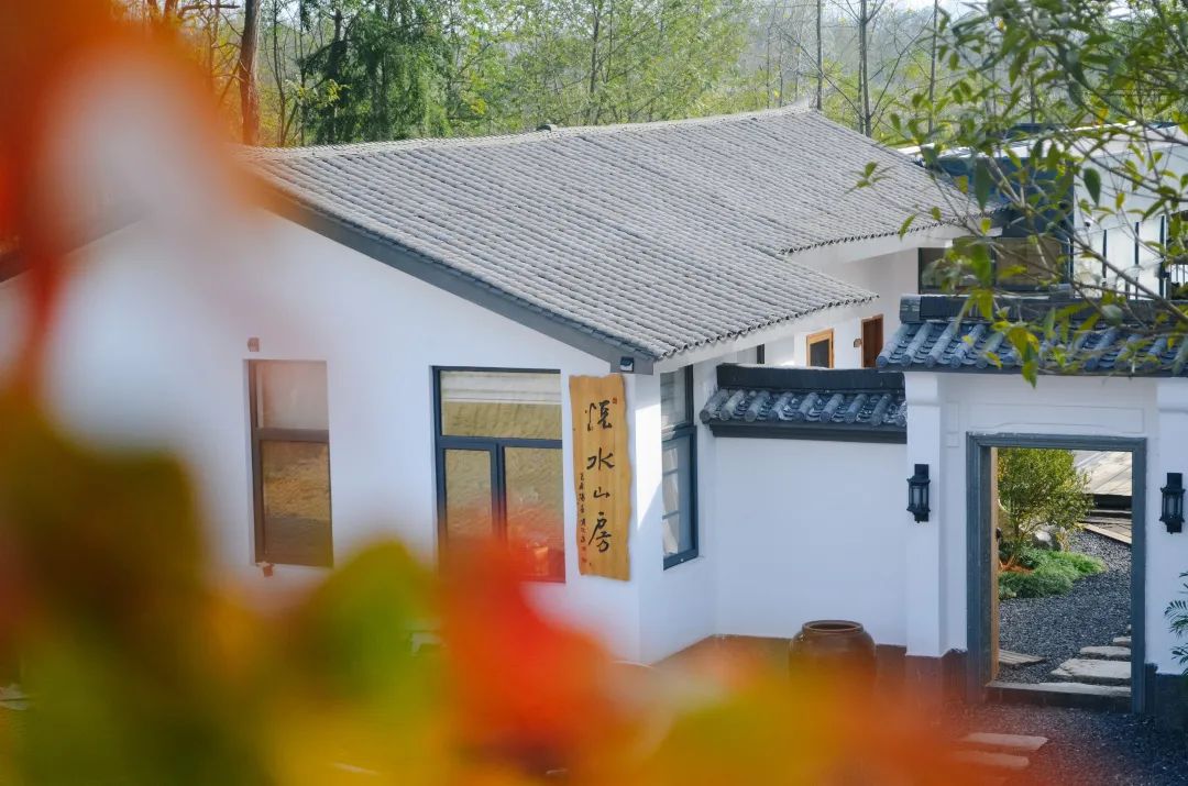 悦水山房隐于云水之间,依山而设,其间茂林修竹空气清新。河畔小舟歇泊、野草丰茂。铺满小石子的庭院、三两张木桌,一叶轻舟、一棵柳树、一条圩埂、一片晚霞,诗意的栖居。
