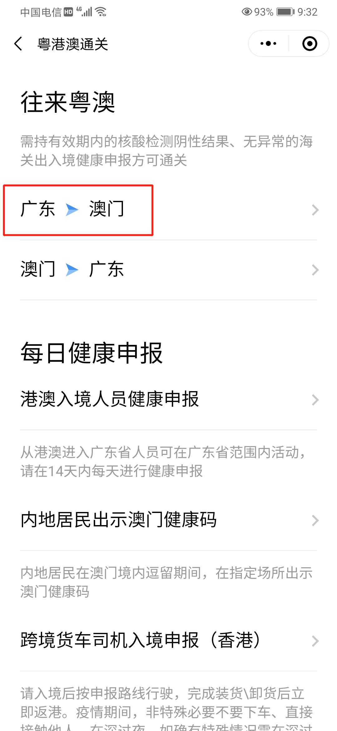 (2) 选择“澳门▶广东”,或选择“内地居民出示澳门健康码”。