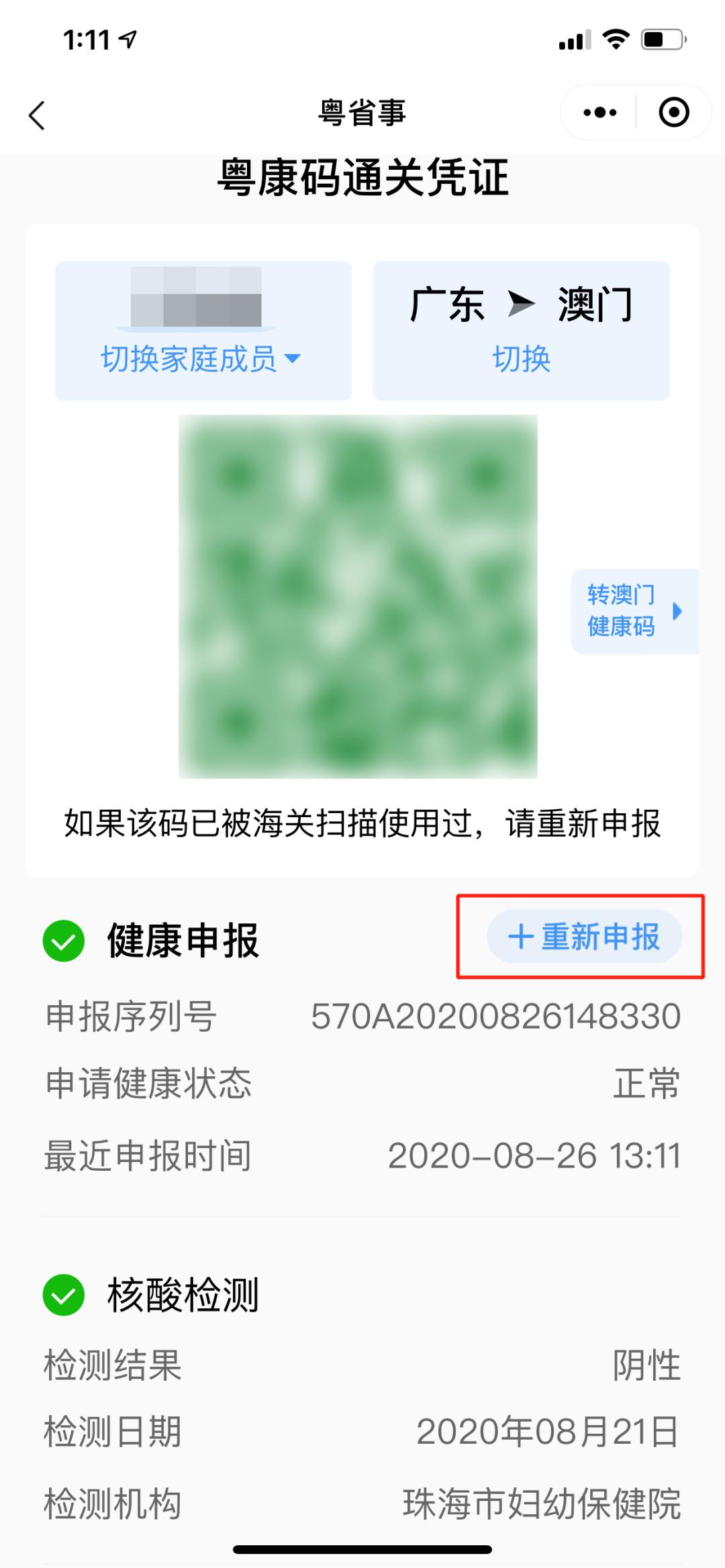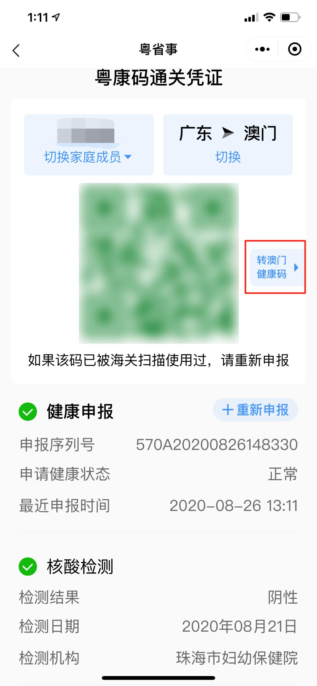 注:请在核酸检测有效期内通关。若澳门健康码没有显示“核酸检测结果-阴性”,请携带纸质核酸检测证明。3