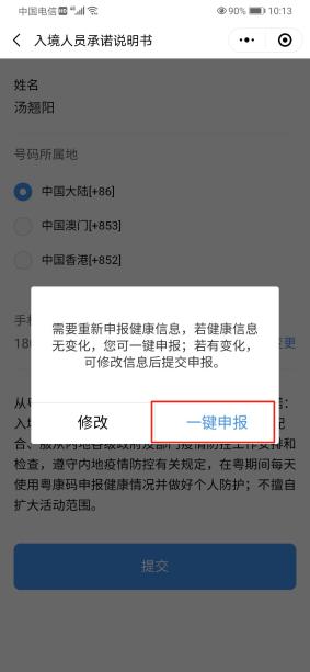 (2) 选择“广东▶澳门”,若无有效健康申报时,提示旅客进行申报,按系统提示填写个人健康申报资料,向出境海关出示“粤康码通关凭证”。