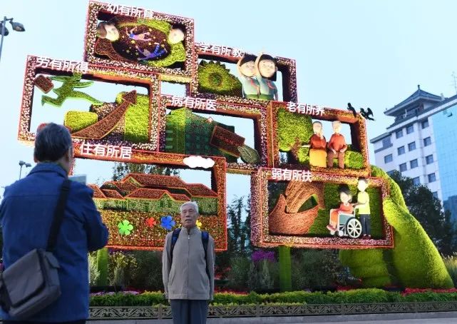 今年是特殊的一年,我国抗击新冠疫情取得阶段性的成效,同时,今年又是全面建成小康社会和“十三五”规划收官之年,天安门广场的巨型花篮和长安街沿线的花坛都体现了这些主题。蓝海浪说,为了体现“硕果累累”“百花齐放”,他和同事从全国每一个省、自治区、直辖市和港澳台各挑了一种花,合并成28种,做成125枝仿真花,插进巨型花篮。