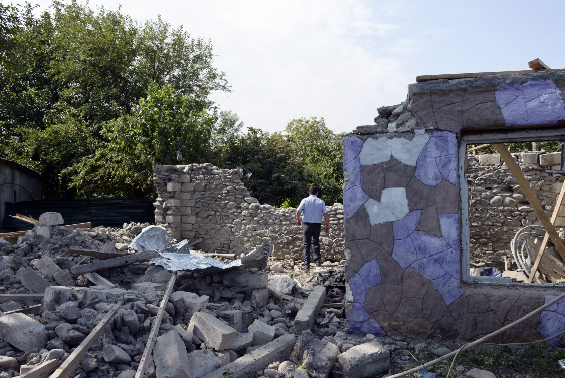 这是9月29日在阿塞拜疆临近纳卡边境的塔塔尔地区拍摄的在冲突中受损的房屋。新华社 图