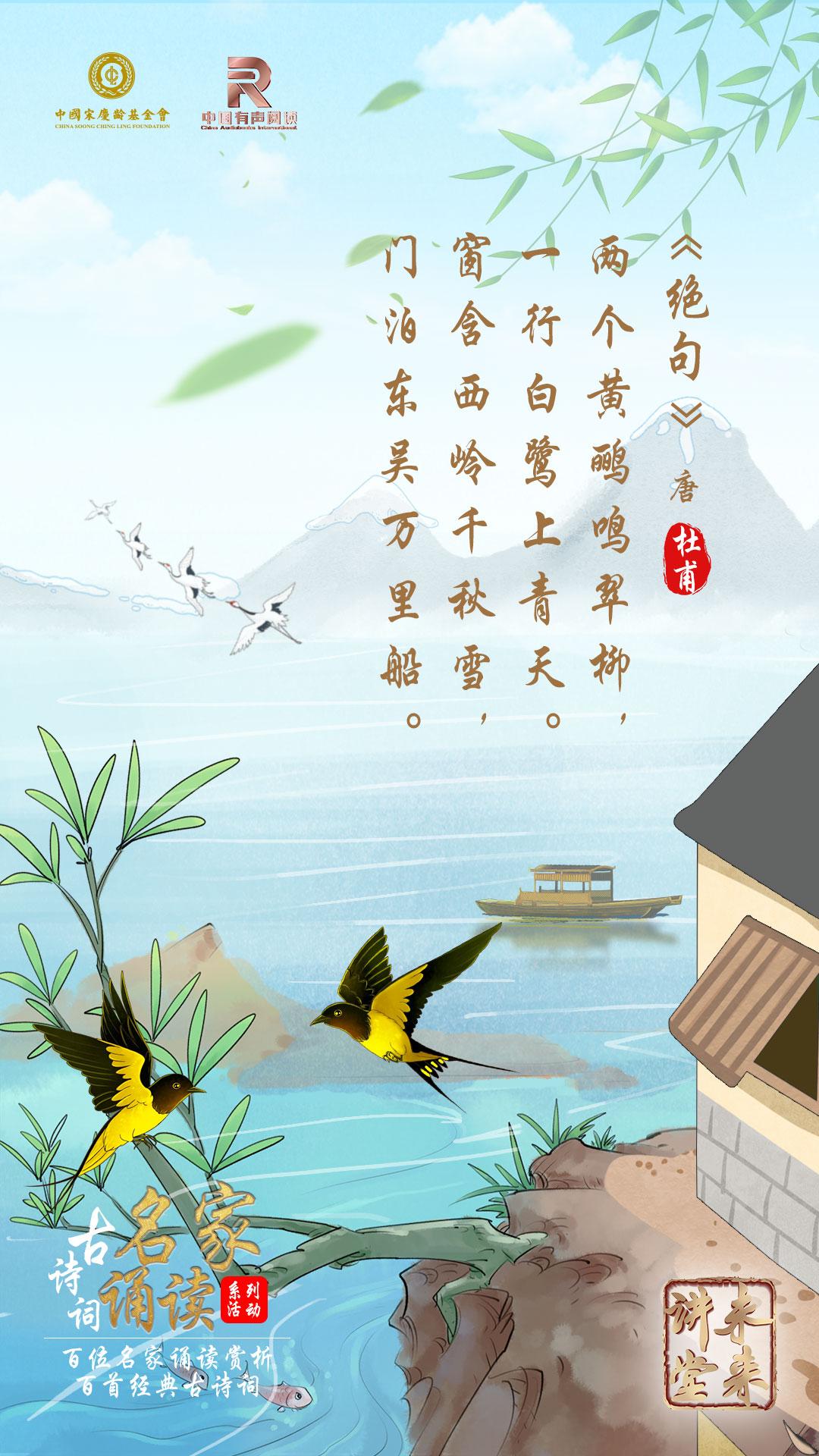 中国宋庆龄基金会、中国广播电视社会组织联合会有声阅读委员会携手推出“未来讲堂”古诗词名家诵读系列活动,邀请百位名家诵读赏析百首经典古诗词,把最经典的古诗词与最优美的声音有机结合,让广大青少年感受古诗词的力量与芬芳,在吟诵鉴赏中志存高远、陶冶情操。让我们传承经典,引领未来!今天,由著名解说员吴俊全老师为大家诵读和赏析的是唐代诗人杜甫的作品《绝句》。
