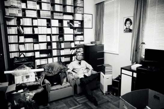 他的快乐来自他智性的生活,读书、写博客,与友人谈文论事。每当访客离开,当这座热闹的宅子回归沉寂,他就将桌上摊开的稿纸收回纸箱,装进黑色垃圾袋里,两只把手一扭,捆扎好,替作家继续“防虫”。