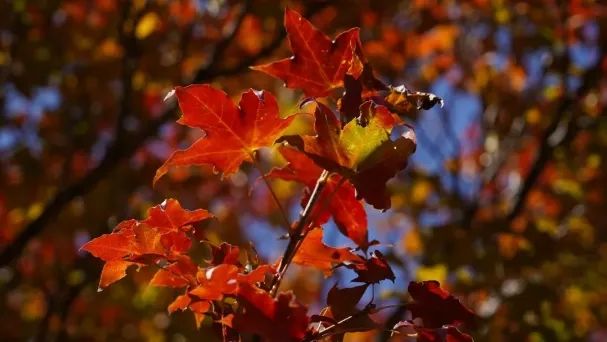 湛蓝、翠绿、金黄、火红、五彩斑斓