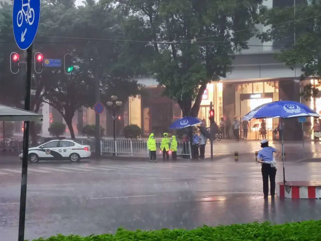 8月26日的傍晚,在下班高峰期突然下起瓢泼大雨,路口行人措手不及,忘记带伞的行人四处避雨,交警忙着在大雨中指挥交通。暴雨如注、视线不佳,志愿者黄诚龙主动拿起自己的雨伞为正在等红灯的行人撑伞,并护送他们安全地走过斑马线。“谢谢你们帮忙啊!真好!”行人纷纷为志愿者道谢。耐心引导
