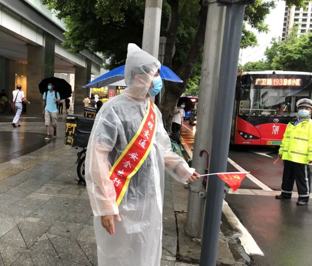 近期连续阴雨天气导致路面湿滑,交通路口高峰期人车流量大、路况复杂,志愿者劝导压力较大。志愿者们仍风雨无阻地穿好雨衣、带上雨伞坚持站岗,积极协助执勤交警和辅警维护路口交通秩序。