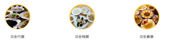 “全竹宴、 全柚宴、全素宴、农家宴”