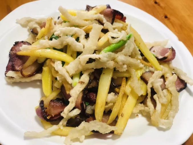 柚皮腊肉。(资料图)主要菜品有:金蝉恋柚、柚子山药、柚皮腊肉、柚子八宝饭等。