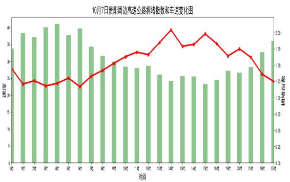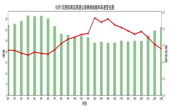 △2020国庆期间贵阳周边高速公路进出口出行趋势预测图预计10月1日上午8时开始,交通压力逐渐增加,13时拥堵达到峰值,15时后逐步回落。