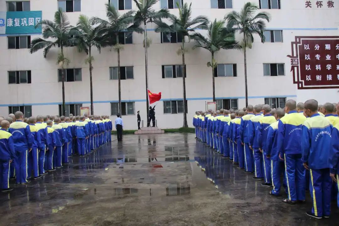 当全体人员听到“奏国歌、升国旗”的口令后,3名护旗手迈着刚劲有力的步伐,护卫着国旗来到旗台前,全体戒毒人员精神抖擞,整齐列队面向五星红旗。伴随着雄壮激昂的《义勇军进行曲》,鲜艳的五星红旗冉冉升起,大家肃然起敬,向国旗行注目礼,共同祝愿伟大祖国繁荣昌盛。