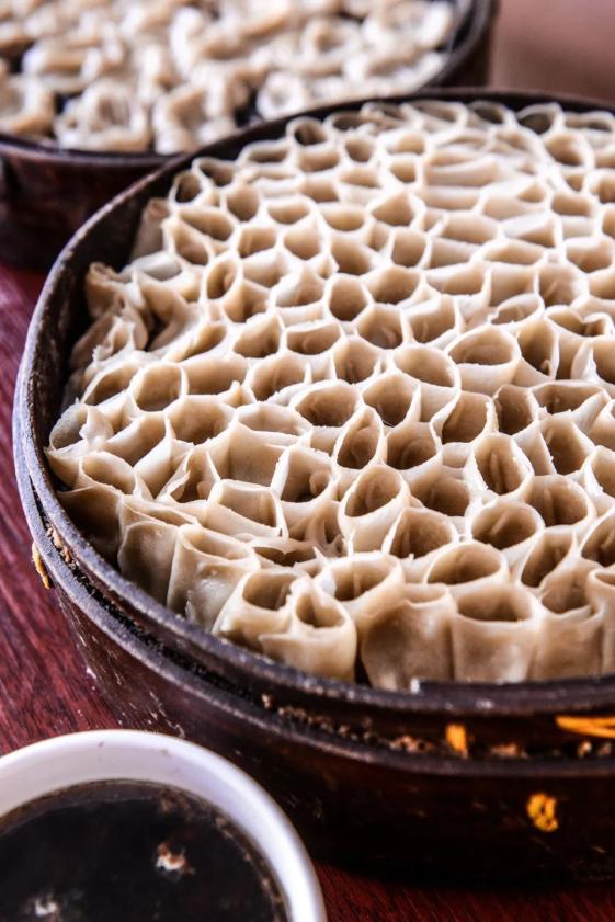 山西、河北、内蒙古交界地带出产的莜麦,磨成面粉很难高度粘合,但当地人依然倔强地表达着对圆的向往——蒸屉上的栲栳栳,仿佛一个个小圆筒。